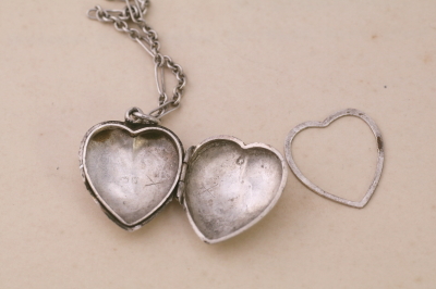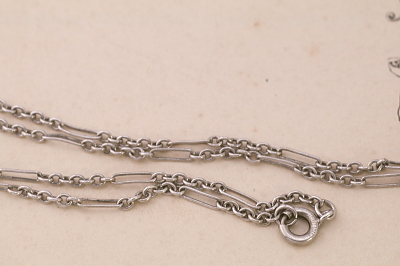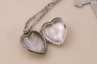 ★A&C15907 クロスとハートロケット シルバーネックレス クロス:26.7×43.6mm(2.5g) ロケット:W18.2,D7.8,H22mm(2.7g) チェーン:42.5cm(3.1g) / sold 925シルバー 送料:宅配便送料無料【3万円以上】 ◆ご注文方法はこちら◆ スターリングシルバーのクロスとハートのロケット。ふたつのチャームを、シルバーチェーンに通したペンダントネックレス。個性的なデザインのチェーンに、クロスに「MOTHER」の文字と、ロケットに「GIG」のイニシャルが、細やかな手仕事で彫刻された、それぞれに魅力的なシルバーチャームです。息子から母親へのプレゼントでしょうか?、あるいは、夫から母親になった妻へ贈られたのかもしれません。ロケットの裏面には深い敬愛を示すメッセージが刻まれています。クロスは1948年、ハートロケットは1950年のクリスマスに贈られた、イギリス製。 ハートロケットに浅い凹みが見られますが、目立たずあまり気にならないと思います。蓋もしっかり閉まります。それ以外はきれいなしっかりした状態です。 シルバーの他にもダイヤやルビー、パールなど、様々なな素材のクロスペンダントをご紹介しています。ページ下部のリンクからご覧ください。 |