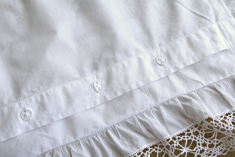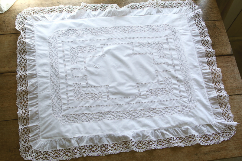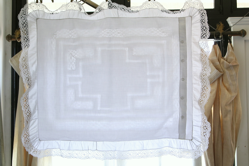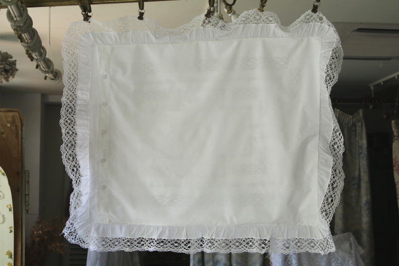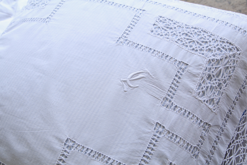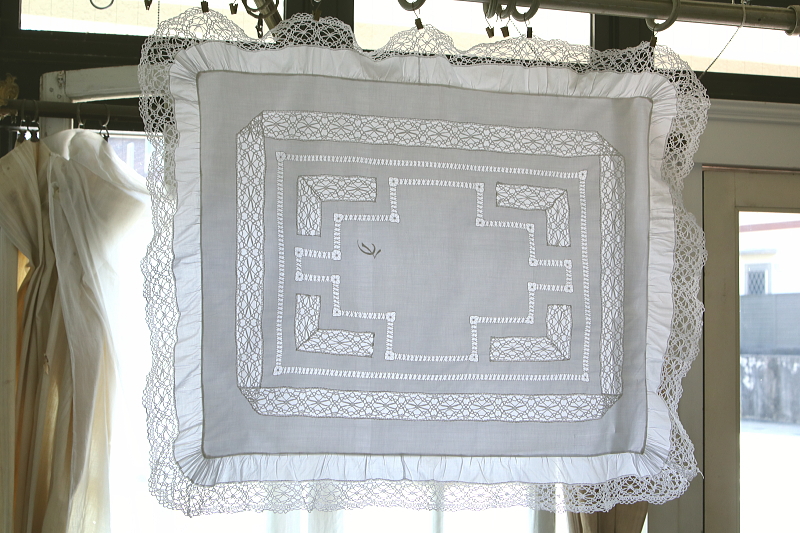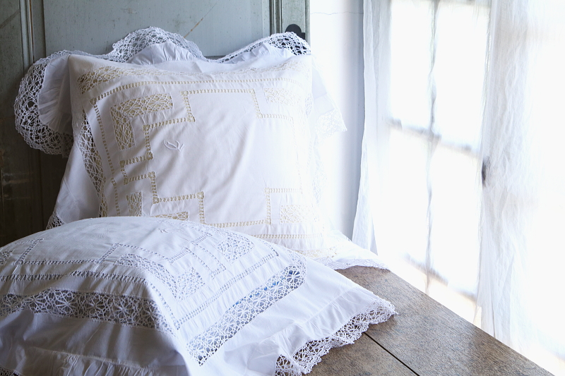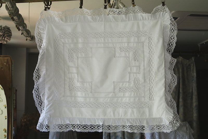 ★A&C15918 ボビンレースのリネンクッションカバー・ペア 100×82cm / ¥16,800.-〔税込み・送料別〕(ペア価格) 送料:Aランク 【送料ページはこちら】 定形外郵便対応【ご注文時にお申し付けください】 ◆ご注文方法はこちら◆ ボビンレースのブレードやモチーフ、ドロウンワークが涼し気な、リネンのクッションカバーを2枚1組でご紹介。ベッドに並べたときの、インナークッションの色や柄にも拘りたくなる透け感が魅力で、レースやドロウンワークの手数の多さが贅沢な気分にさせてくれる、イギリスのハンドメイドです。モノグラムの刺繍が、左右に刺されているのもかわいらしいです。 ボビンレースが多いのでごく僅かにほつれなど見られますが、全体にきれいなしっかりした状態で残っているのが嬉しいです。 (状態については、出来る限り注意深く確認しておりますが、見つけきれなかった小さな染み、薄い染み、僅かな糸切れ等、目立たない小さなダメージがあることもございます。何卒ご容赦ください。) 他にもクッションカバーをご紹介しています。ページ下部のリンクからご覧ください。 |