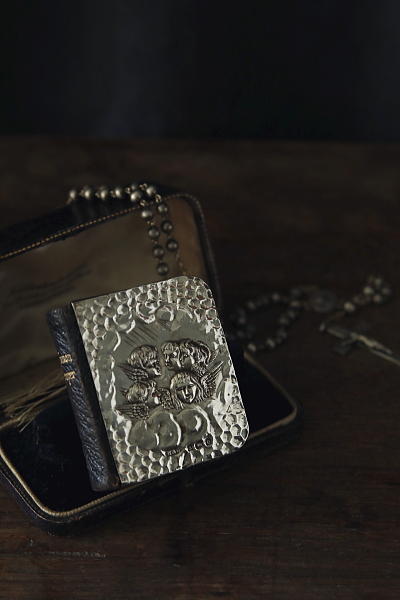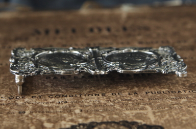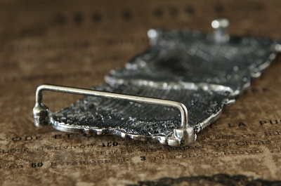 ★A&C15925 エンジェルズヘッズのナースバックル W11.3×H5.8cm(89g) / ¥11,200.-〔税込み・送料別〕 合金 送料:Aランク 【送料ページはこちら】 ◆ご注文方法はこちら◆ ナースバックルと呼び習わされている通り、看護師などが身につけたものだそうで、19世紀から20世紀初期に見られたスタイルのベルトバックルです。通常クローククラスプのように2つに分かれたバックルを、真ん中でフックで留めるものですが、こちらは一体に溶接されているのも面白い。裏の金具がループとピンなので、おそらくレザーベルトで使うよう加工されたのだと思います。シルバートーンのメタルの重量感も心地よく、ジョシュア・レイノルズの「エンジェルズヘッズ」のレリーフも、渋い輝きで目を楽しませます。1900年頃のイギリスから。 特に目立つダメージの見られない、きれいなしっかりした状態です。 エンジェルヘッズや天使のモチーフのシルバーウェアなどご紹介しています。ページ下部のリンクからご覧ください。 |