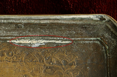 ![]() 真ん中あたりのイングレービングが薄くなっています。 |