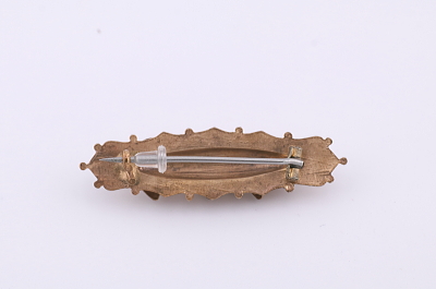 ★A&C15968 ホースシュー&トリコロールペーストブローチ 50×12mm(7g) / ¥5,800.-〔税込み・送料別〕 ガラス / メタル 送料:Aランク 【送料ページはこちら】 定形外郵便対応【ご注文時にお申し付けください】 ◆ご注文方法はこちら◆ ホースシューが3つ並んだ、金色のメタルのバーブローチ。3色のペーストと金色のメッキの輝きに、童心をくすぐられる、キラキラ感がかわいらしいブローチです。トリコロールのペーストがまるで、ホースシューが捕まえた幸運を表しているようで、身に着けていると良いことがありそうなひと品。20世紀前期のヨーロッパから。 真ん中のクリアペーストの端に欠けがあります。落下防止にシリコンストッパーをお付けします。写真のアンティークケースは付属しません。 ペーストブローチなどコスチュームジュエリーを特集しています。ページ下部のリンクからご覧ください。 |
