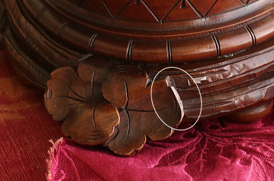 ![]() 蓋の彫刻:葉先の欠損。 |