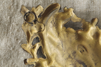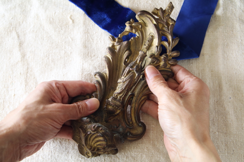 ★A&C15982 ブロンズのルルドの聖水盤 W10.5,D5,H23.5cm / ¥14,600.-〔税込み・送料別〕 送料:Aランク 【送料ページはこちら】 ◆ご注文方法はこちら◆ 重みあるブロンズの金の彩色が、経年の深みある表情をまとう、ルルドのマリア様の聖水盤。マリア様の背後では、十字架をあでやかに咲くアヤメが包み込む様子に、聖母の慈愛が表現されているように思えます。手を合わせるマリア様の優しげな佇まいも、経年で身に纏った風合いも魅力的なひと品は、1900年頃のフランスの、聖地ルルドのスーベニールです。 特に目立つダメージの見られないきれいなしっかりした状態です。 様々なデザインの聖水盤をご紹介しています。ページ下部のリンクからご覧ください。 |