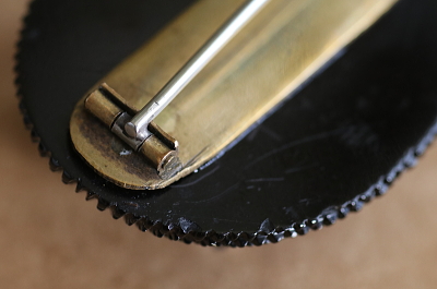 ★A&C16011 葡萄のジェットブローチ 42×35mm(14.5g) / sold ジェット / 真鍮 送料:宅配便送料無料〔3万円以上〕 ◆ご注文方法はこちら◆ オーバルシルエットから葡萄の葉と房が浮かび上がるように彫刻された、ボリューム感も十分なジェットブローチ。実の粒立ちや葉の葉脈、縁の細やかなチェッカーパターンなど、彫りのエッジまで鑑賞できる彫刻の、ジェットならではの硬質の輝きが美しいひと品。ヴィクトリア期のイギリスで、ジュエリー用に様々な黒い素材が流行しましたが、ジェットの漆黒の深みと輝きの鮮やかさは、他の素材の追随を許さない、本物ならではの豪華さを愉しめます。19世紀のイギリスから。 裏の縁に細かな欠けが幾らか見られますが、表からはわかりません。ブドウの粒の横に小さな窪みがあり、欠けかも知れませんが目立ちません。 黒いジュエリーをご紹介しています。ページ下部のリンクからご覧ください。 |