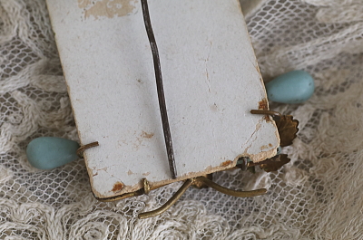 ★A&C16018 小さなスーベニールフォトスタンド W5.3×6cm / 送料:Aランク 【送料ページはこちら】 ◆ご注文方法はこちら◆ 繊細な細工で金色の葉っぱとブルーの実が飾られた、小さな小さなフォトフレーム。針金のフレームにガラスを収めて、紙の背板には「Novelty」の文字が入ります。目を惹く小ささのフォトフレームは、フランスの品ですが英語が書かれているので、イギリス向けに作られたものだと思います。葉っぱのメッキが少々剥がれていますが、これほど華奢で愛らしいフォトフレームが、特に目立つダメージも無く残っているのが嬉しいです。1900年頃のフランスの品。 様々なデザイン、サイズのフォトフレームをご紹介しています。ページ下部のリンクからご覧ください。 |