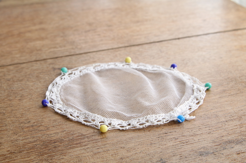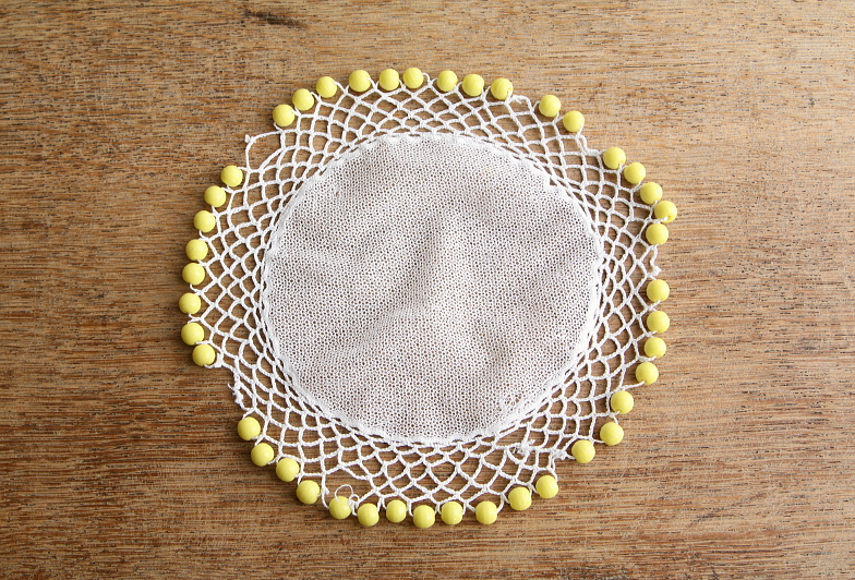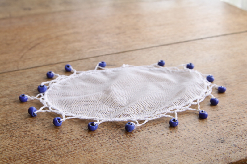 ![]() A&C16030-A:直径21cm(ネットの部分16cm) / ¥4,800.-〔税込み・送料別〕 ビーズの欠損やレースの穴は見られません。 |