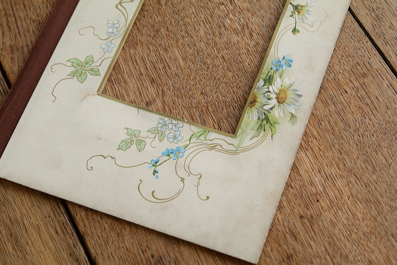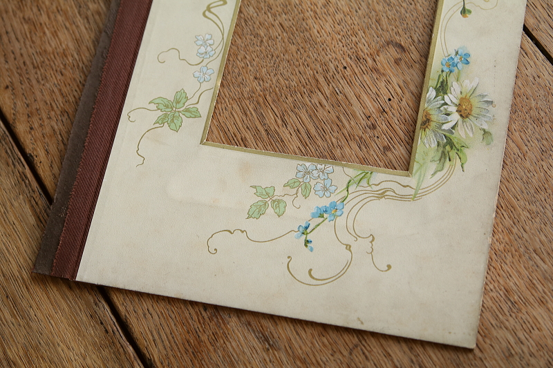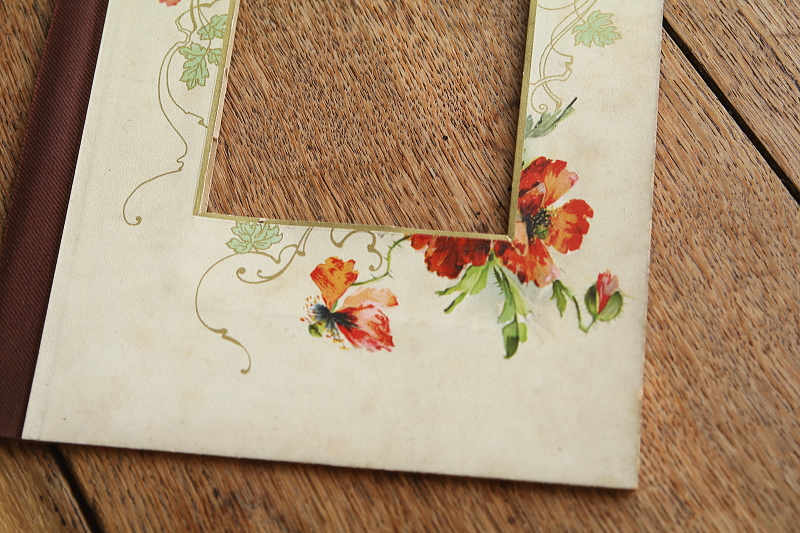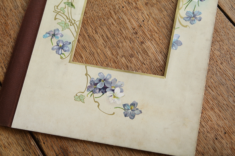 ★A&C16031 ヴィクトリアンのアルバムページ A&C16031-A~D共: 18×26.3cm / 送料:Aランク 【送料ページはこちら】 定形外郵便対応【ご注文時にお申し付けください】 ◆ご注文方法はこちら◆ ページの余白に這い伸びるように、可憐なスミレやケシ、デイジーやワスレナグサが描かれた、古いフォトアルバムからのページ。しっかりとした厚みのある紙に、鮮やかな中にも時代の重みを感じさせてくれる、ヴィクトリア期の印刷の手触りが麗しいボタニカルアートとして愉しめます。 経年の色づきやシミ、裏面のスリットに破れが見られますが、あまり気にならないと思います。表記サイズに茶色い綴じ代は含んでいません。 ヴィクトリア時代のガラス写真をご紹介しています。ページ下部のリンクからご覧ください。 |
