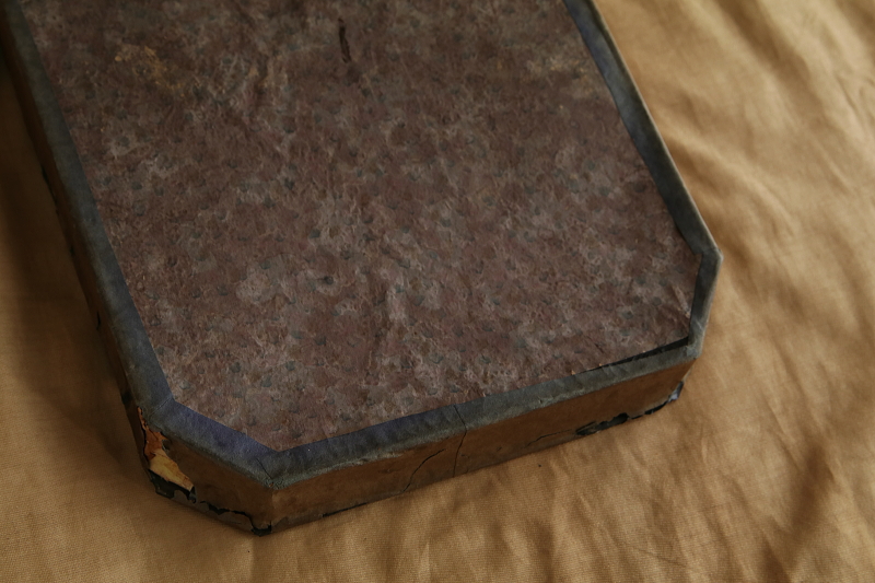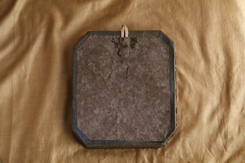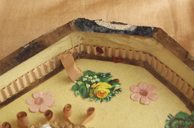 ★A&C16046 聖ヨセフの壁飾り W22,D3,H25cm / ¥32,800.-〔税込み〕 送料:宅配便送料無料〔3万円以上〕 ◆ご注文方法はこちら◆ 聖ヨセフが幼子イエスを抱く、ホーリーカードを中央に据えた、ガラスカバーの壁飾り。カードを飾り立てるベージュのクッションや、クリーム色の台紙にはデコパージュや銀紙の花を飾り、丁寧な仕事ぶりに素朴な信仰心が現れるよう。1900年頃の品と思われ、縁にはテープの名残が見られますが、ガラスは接着されておりしっかり固定されています。ガラスのお陰で、100年ほどの時間の経過の中でも、古いカードの色あいがきれいに残っているのが嬉しいです。フランスから。 内部の飾りが一部額の中に落ちています。背面の厚紙に反りが若干見られます。 聖父子の像や印刷をご紹介しています。ページ下部のリンクからご覧ください。 |