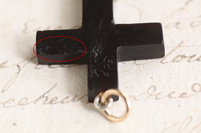 ![]() クロスの厚みは4ミリ。チェーンは付属せず、ペンダントトップのみの販売です。 |