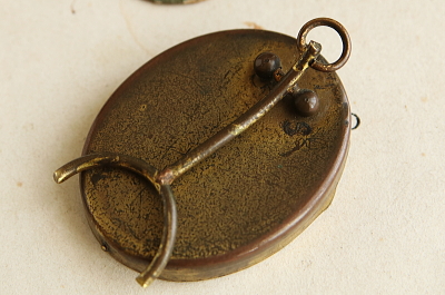 ★A&C16074 チェーンフレーム オーバルフォトフレーム 4,8×6cm / ¥12,800.-〔税込み・送料別〕 送料:Aランク 【送料ページはこちら】 ◆ご注文方法はこちら◆ ブラスのチェーンが縁取るような個性的なデザインに、経年の色づきも魅力的な小さなオーバルフォトフレーム。裏蓋をフレーム側に被せてはめる作りで、容易に写真を交換できるのは、古いフォトフレームにはめずらしい。ヴィクトリア時代のブラスフレームの味わいと、使い勝手の良さの両方を愉しめる、ちょっと得した気分になれるひと品。19世紀のイギリスから。 特に目立つダメージは見られず、きれいなしっかりした状態です。 様々なデザイン、サイズのフォトフレームをご紹介しています。ページ下部のリンクからご覧ください。 |