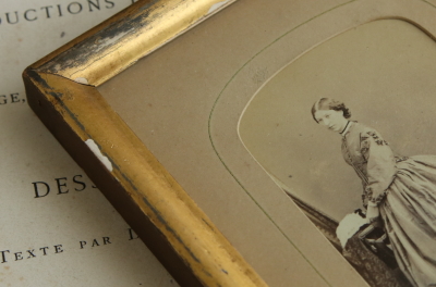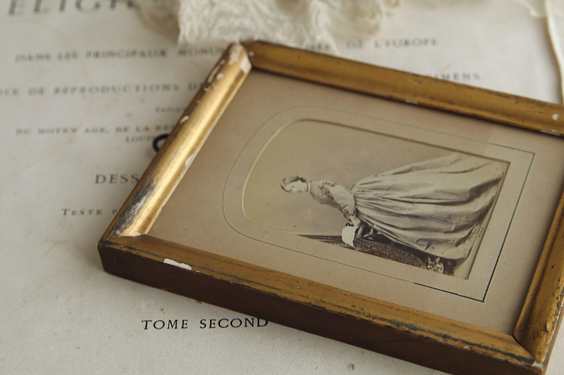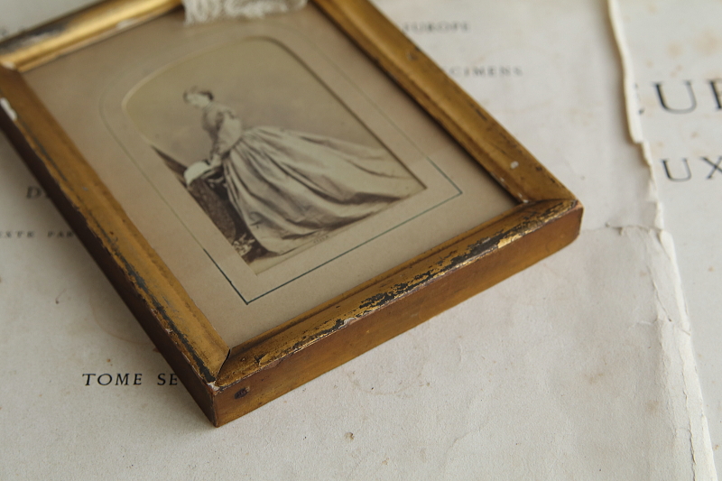 ★A&C16075 ヴィクトリアン ポートレートフレーム A&C16075-A,B共: W11.5,D1.5,H15cm(金具含まず) / 各¥11,000.-〔税込み・送料別〕 送料:Aランク 【送料ページはこちら】 ◆ご注文方法はこちら◆ 金色の古い塗装が魅力的な、こぶりなフレームに額装された、ドレスに身を包んだご婦人達のポートレート。対になる構図で写真に収まる、よく似た二人は家族なのでしょう、年齢の違いによるファッションの違いが興味深い、ヴィクトリア時代の額装フレーム。木製フレームに施された、金色の塗装は幾らか擦れたり剥がれたり、経年の表情を浮かべて、ガラスに守られつつも少しく色褪せた、時代を感じる写真によく似合います。19世紀、ヴィクトリア時代のイギリスから。 いずれも経年の色づきや色褪せ、塗装の剥離など見られますが、アンティークの風合いとして楽しめるものです。時代を考えればいずれもきれいなしっかりした状態です。 ガラス写真などのアンティークフォトをご紹介しています。ページ下部のリンクからご覧ください。 |