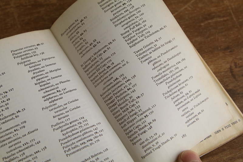 ![]() A&C16081-B(MUSHROOMS Toadstools):9.2×14.5cm / ¥6,600.-〔税込み・送料別〕 1978年の出版。64のキノコをカラーイラストで収録、他52の白黒写真を愉しめます。 全185ページ。詳細には調べていませんが、落丁などは無さそうです。 |