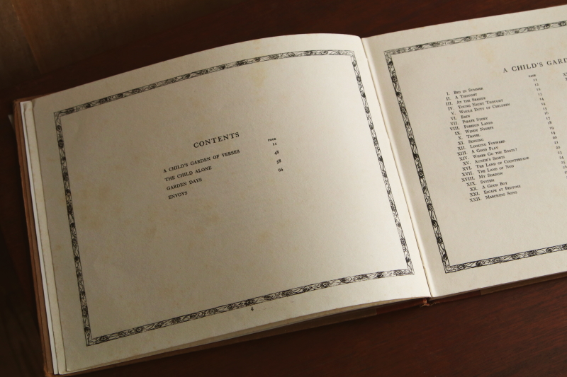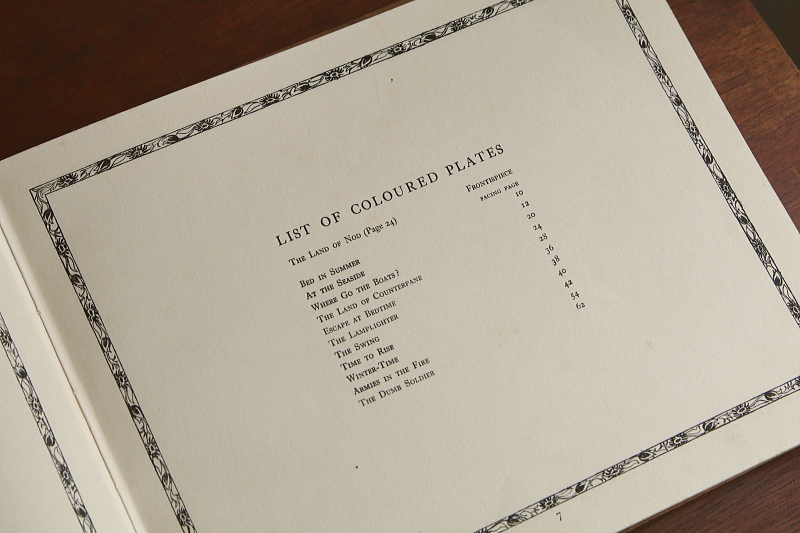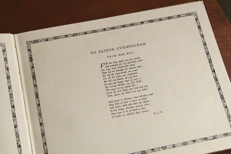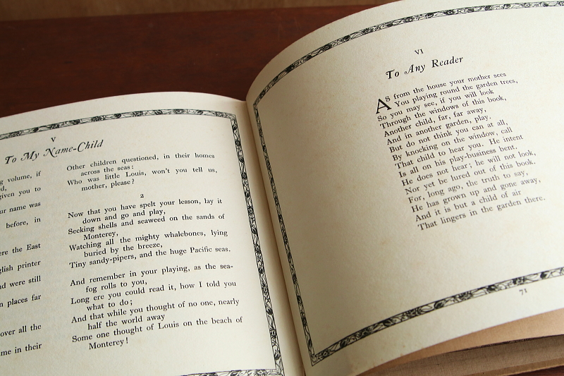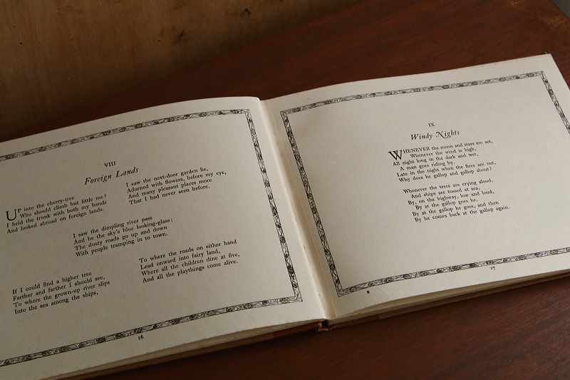 ★A&C16082 A CHILD'S GARDEN OF VERSES 28×22.5cm / 送料:Aランク 【送料ページはこちら】 ◆ご注文方法はこちら◆ 「子供の詩の園」のタイトル通り、60篇あまりの短い詩を集めた子供向けの詩集は、「宝島」や「ジキル博士とハイド氏」など冒険小説で知られる作家、ロバート・ルイス・スティーヴンソンにより1885年に発表されました。以降挿絵版や絵本版などさまざまな版が出版されましたが、これはオランダ出身の絵本作家、ウィルビーク・ル・メールのカラーイラストが魅力的な、1931年にGeorge G. Harrap & Co.により出版された愛らしい1冊。時に写実的で時に幻想的な子供たちの姿を、透明感のある美しい色彩で描き出しています。 全72ページと12枚のカラープリントプレートの内、カラープリントプレートが1枚無くなっていますが、それ以外はページもきれいで綴じもしっかりしています。僅かに経年の染みや、表紙に落書きが見られます。1931年の初版本です。 他にもイラストや装丁の美しい児童書をご紹介しています。ページ下部のリンクからご覧ください。 |