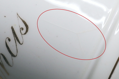 ![]() 内側にもひびがありますが、表面には抜けていません。 |