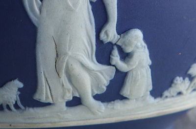 ![]() レリーフに焼成時の収縮によるヒビが見られます。 |