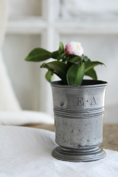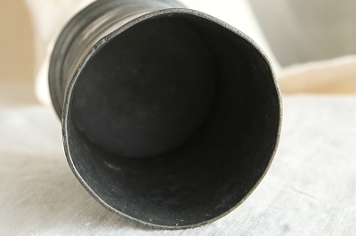 ★A&C16131 1/2 PINT ピューターゴブレット 7.7×10cm / ¥12,000.-〔税込み・送料別〕 送料:Aランク 【送料ページはこちら】 ◆ご注文方法はこちら◆ 1/2PINTの刻印が押されたピューターのゴブレット。キリッと引き締まった器形に、程よく歪みを纏って幾分柔らかな表情になりました。ピューターの輝きも鈍く深みを増してきたので、これからも育てていきたくなります。19世紀のイギリス製。 下部の溶接の隙間から水漏れするので、花器として使う場合は小さなグラスなどを落としにしてください。 ピューターの器や道具をご紹介しています。ページ下部のリンクからご覧ください。 |