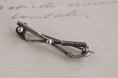 ★A&C16137 シルバーゴルフブローチ 36×8mm(2.3g) / ¥9,000.-〔税込み・送料別〕 送料:Aランク 【送料ページはこちら】 定形外郵便対応【ご注文時にお申し付けください】 ◆ご注文方法はこちら◆ 交差するゴルフクラブとボールをデザインした、シルバーのブローチ。小ぶりでさり気なく、ユニセックスに身に着けられる、ゴルフ好きにおすすめのひと品。もちろんプレゼントにも素敵です。刻印などはありませんが、テスト済みのシルバー製。1920年代頃のイギリスから。 特に目立つダメージの見られない、きれいなしっかりした状態です。写真の紙箱は付属しません。落下防止にシリコンストッパーをお付けします。 ゴルフモチーフのカフリンクスをご紹介しています。ページ下部のリンクからご覧ください。 |
