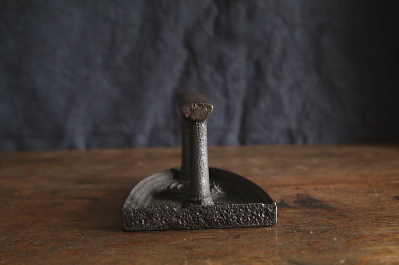 ★A&C16138 鋳鉄のフレンチアイロン A&C16138-A: W16.5,D9,H6.8cm(935g) / ¥14,500.-〔税込み・送料別〕 A&C16138-B: W16,D9.5,H9cm(1146g) / ¥14,500.-〔税込み・送料別〕 送料:Aランク 【送料ページはこちら】 ◆ご注文方法はこちら◆ 鈍く輝く黒鉄の輝きからも、重量を感じられる大きなアイロン。紋章やロココ調のレリーフが浮かぶ、経年の深みを感じさせる面持ちは、19世紀に生を受けた古い道具ならではの奥行きのある表情です。どこか洗練されたシルエットに、フランスの空気を感じられる、19世紀のフランスのアイロンは、1キロ前後の重みを活かして、ブックエンドやドアストッパーなどに素敵なインテリアです。 Aの縁に小さな古い欠けが見られますが、特には気にならないと思います。それ以外に目立つダメージは見られません。 アイロントリベットやミシンをご紹介しています。ページ下部のリンクからご覧ください。 |