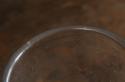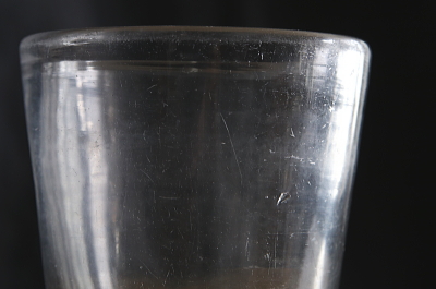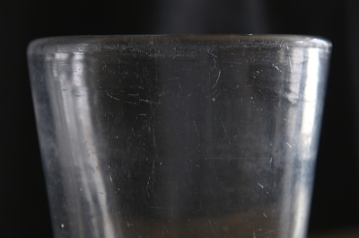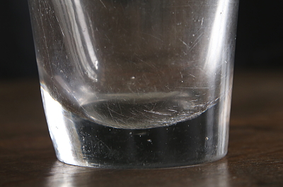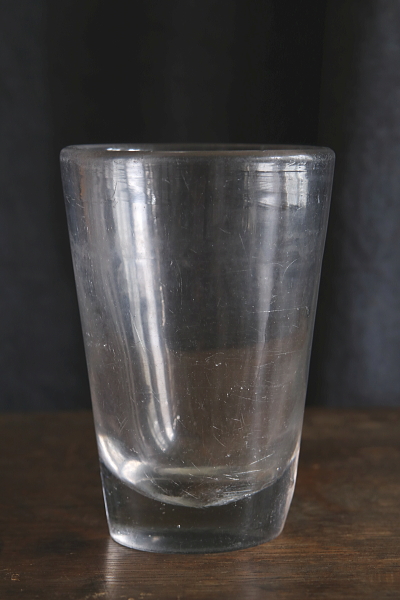 ★A&C16139 厚ガラスのタンブラー W9,H12.8cm(512g) / ¥7,500.-〔税込み・送料別〕 送料:Aランク 【送料ページはこちら】 ◆ご注文方法はこちら◆ アンティークなラフなガラスの質感と、モダンにも思えるシンプルなシルエットのバランスが絶妙。男っぽいタンブラー。頑強な分厚いガラスは500グラムを越し、すり切り380mlの容量を誇る、男っぽさ溢れるタンブラー。ガラス表面に無数のキズが見られますが、それさえも魅力に思えるワイルドさです。厚い底に安定感があり、草花用の花器としても使えそうです。1900年頃のフランスから。 ガラス表面にキズ、くもりが見られますが、欠けやヒビ等の目立つダメージは見られません。 厚みのある大きなグラスをご紹介しています。ページ下部のリンクからご覧ください。 |