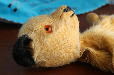 ![]() プラスティックアイズ。鼻面に黒い点状のステッチが入っています。 |