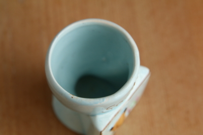 ★A&C16149 SOOTYのエッグカップ 4.3,D4.5,H5.5cm / 送料:Aランク 【送料ページはこちら】 ◆ご注文方法はこちら◆ 黒いお耳の愛らしいクマのキャラクターは、イギリスの子供達の人気者。1950年代のテレビ、「スーティーショー」に登場したパペットのスーティーは、色々な子供グッズにもキャラクターとして登場しました。イギリスの朝食に欠かせないエッグカップにも登場して、子供たちを喜ばせていたのかなと思うと、健気な働きぶりに感心してしまいます。テレビの中のすーてぃーを表現した、淡いブルーの発色がきれいな陶器製のエッグカップ。50~60年代頃のイギリス製。 こちらもイギリスのキャラクター、ボンゾのコレクションやスーティーのゲームをご紹介しています。ページ下部のリンクからご覧ください。 |