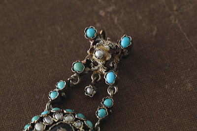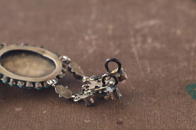 ![]() 真ん中のドロップのターコイズが欠損しているようで、シルバーで埋められています。 |