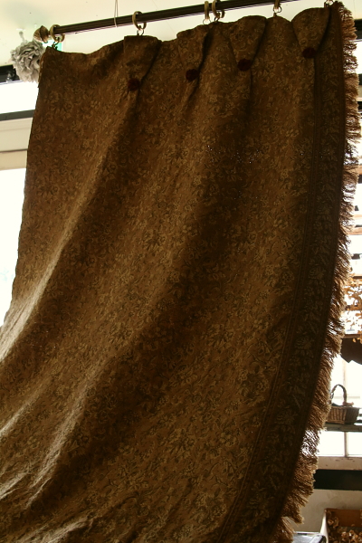 ★A&C16181 花模様のオールドゴブランカーテン 119~138×310cm / ¥39,000.- 〔税込み・送料別〕 送料:宅配便送料無料(3万円以上) ◆ご注文方法はこちら◆ 織り糸の凹凸が影を作り、深みある表情を光の中に浮かび上がらせます。黄褐色のシックな色みに花模様を一面に織り上げた、長さ3メートルを超える立派なサイズのゴブランカーテン。長い時間を過ごしてなおしっかりとした生地を保つ、重みと厚みが頼もしさを感じさせます。当店でクリーニング済みできれいな状態です。フリンジに欠損が僅かにみられる程度で、目立つ穴などのダメージは見られません。1900年頃のフランスから。 (状態については、出来る限り注意深く確認しておりますが、見つけきれなかった小さな染み、薄い染み、僅かな糸切れ等、目立たない小さなダメージがあることもございます。何卒ご容赦ください。) 他にもゴブランのカーテンやパネルをご紹介しています。ページ下部のリンクからご覧ください。 |