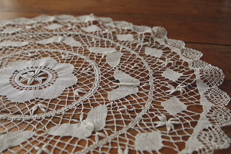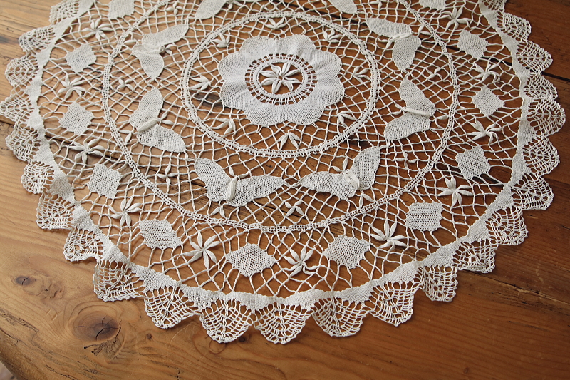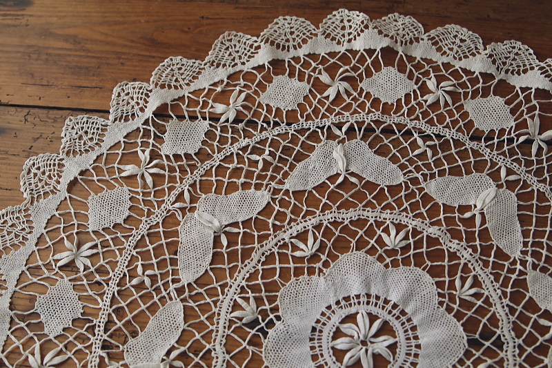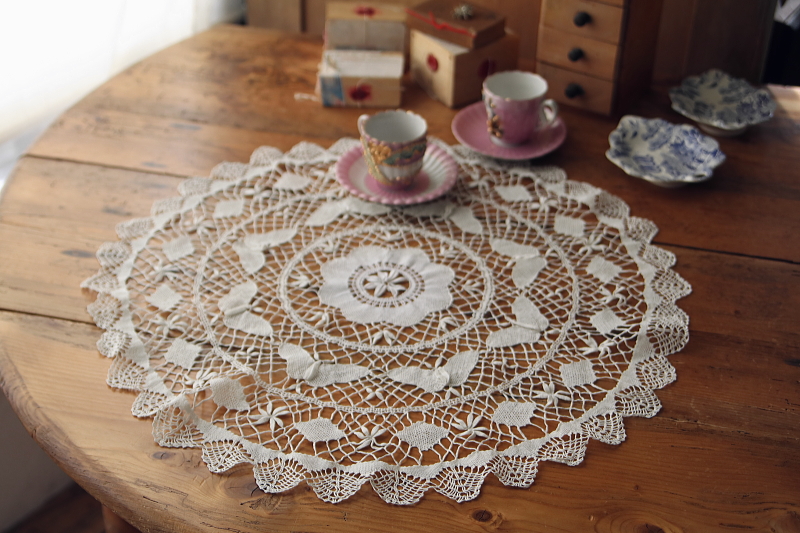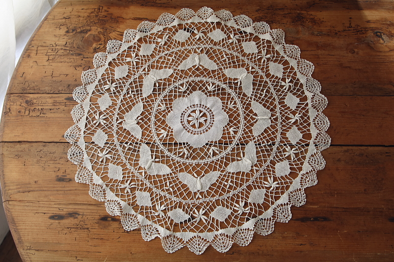 ★A&C16182 蝶のボビンレースマット 直径59cm / 送料:Aランク 【送料ページはこちら】 定形外郵便対応【ご注文時にお申し付けください】 ◆ご注文方法はこちら◆ 真ん中に花を、周りを蝶々が取り巻くような、かわいらしいモチーフのボビンレースマット。直径59センチとゆったりとしたサイズで、レースの網目のひとつひとつに、手仕事のぬくもりが感じられる愛らしい一枚は、イギリスで購入。 特に目立つダメージの見られない、きれいなしっかりした状態です。 (状態については、出来る限り注意深く確認しておりますが、見つけきれなかった小さな染み、薄い染み、僅かな糸切れ等、目立たない小さなダメージがあることもございます。何卒ご容赦ください。) 蝶々のモチーフのドイリーやテーブルクロスをご紹介しています。ページ下部のリンクからご覧ください。 |