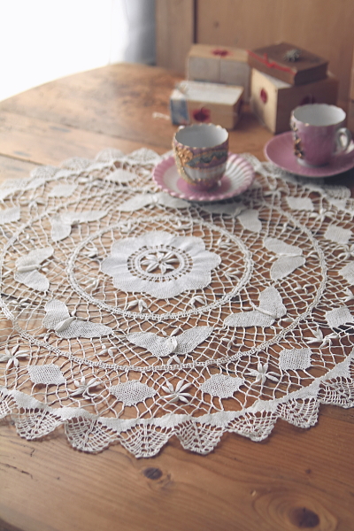![]() ★A&C13551 蝶々と花のボビンレースドイリー |