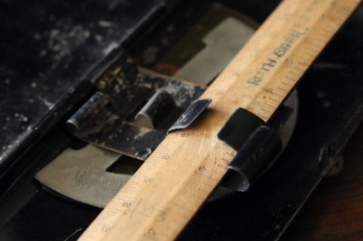 ![]() 物差しにホルダーで削れたスレ。 |