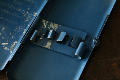★A&C16187 スチール算数筆箱 "THE CAMBREDGE SET" A&C16187-A:W16.5,D8,H1.7cm / ¥6,700.-〔税込み・送料別〕 A&C16187-B:W16.5,D8,H1.7cm / ¥6,700.-〔税込み・送料別〕 送料:Aランク 【送料ページはこちら】 ◆ご注文方法はこちら◆ キズやペイントの剥げもカッコいい、スチール製の筆箱を色違いで。「THE CAMBREDGE SET」のエンボス文字が浮かび上がる、算数用の製図セットが入っていたもので、今も物差しと分度器などが残っています。中のスチールホルダーには物差しが挿してありますが、コンパスや鉛筆も収められるよう。黒とブルーの色使いもいい感じで、何れもペイントを削るように、名前が書かれているのも良い雰囲気。20世紀前半から中頃のイギリス製。 文房具や工具類をご紹介しています。ページ下部のリンクからご覧ください。 |