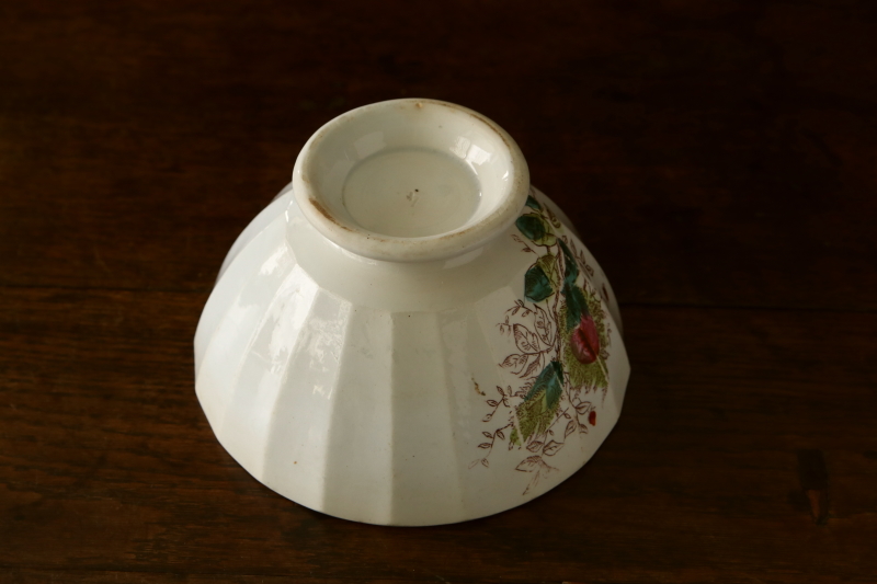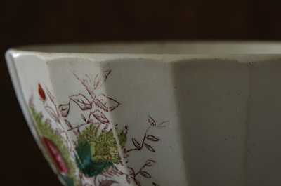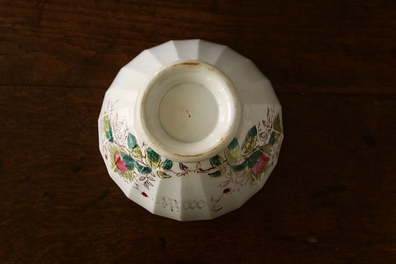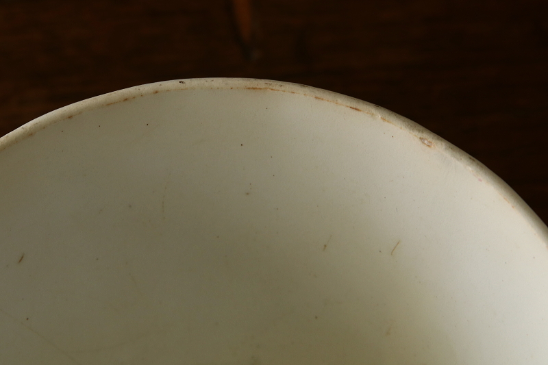 ★A&C16201 モスローズのラージカフェオレボウル "Amitie" W14.8,H8.8cm / ¥12,000.-〔税込み・送料別〕 送料:Aランク 【送料ページはこちら】 ◆ご注文方法はこちら◆ 蕾や花裏の萼に生える腺毛をグリーンで、花を紅く手彩色した、モスローズの絵柄のカフェオレボウル。褐色の線画プリントに、ワイルドなタッチで乗せた色が、経年の風合漂う柔らかな陶肌に引き立ちます。今ではうっすら掠れているけど、Amirie(友情)の文字は100年の時間を過ぎても健在です。器内部のキズや絵柄のスレなど、時代を感じさせる表情が魅力の、堂々としたサイズのカフェオレボウル。1900年頃のフランスから。 内側に線状のキズが多く見られますが、ヒビでは無く、ヒビや欠けの無いしっかりした状態です。縁に製造時やごく古く小さなキズが若干見られますが、気にならないと思います。 モスローズの絵柄のカップなどご紹介しています。ページ下部のリンクからご覧ください。 |