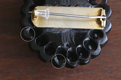 ![]() ブローチ金具は、付け替えられた痕跡がありますが、同時代の金具が取り付けられています。 |