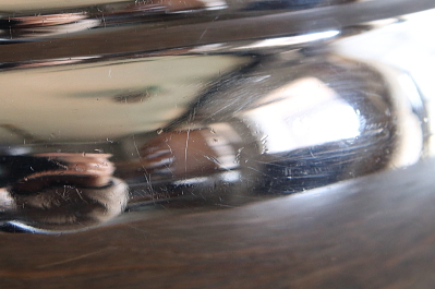 ![]() 底にシルバープレートの摩滅が幾らか見られます。(コーナーの黒い部分は映り込みです) |