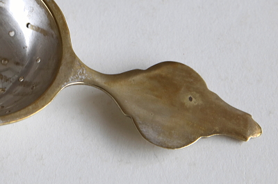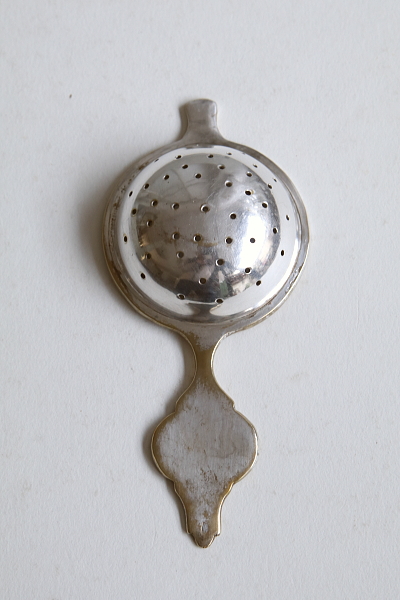 ★A&C16228 ホテルウェア ティーストレーナー W6.5,L14.5cm(80.5g) / ¥7,500.-〔税込み・送料別〕 送料:Aランク 【送料ページはこちら】 ◆ご注文方法はこちら◆ スタイリッシュなシルエットに、シルバーとブラスの金色が程よく濃淡を表す、シルバープレートのティーストレーナー。厚みある真鍮の板を、プレスして形作る無駄のない機能美と、80グラムの重量は手にして驚くかも知れないけれど、業務用ならではのタフさが感じられて頼もしいホテルウェア。20世紀中期、フランスのヴィンテージ。 シルバープレートの摩耗、摩滅が見られますが、凹みや歪みは見られずしっかりした状態です。 ティーストレーナーやティーキャディースプーンをご紹介しています。ページ下部のリンクからご覧ください。 |
