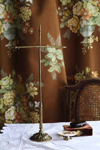 ★A&C16234 薔薇のフラワーベース プリントファブリック SANDERSON 127×140cm / ¥6,300.-〔税込み・送料別〕 送料:Aランク 【送料ページはこちら】 ◆ご注文方法はこちら◆ インテリアファブリックの老舗、英国Sanderson社による、薔薇を始めとした花々のあでやかなフラワーベースを描いた、デッドストックのコットンプリントファブリック。シックなブラウンをベースに黄色い薔薇など、淡い色味が際立つコントラストが華やかな一枚。しっかりとした目の詰まった織りのファブリックは、光沢のある表面の手触りも好ましい、しっかりとした厚みの生地。そのまま上下端を始末すれば、カーテンなどに使えそうな、大きめサイズが魅力です。 インク染みのような黒い染みが1ヶ所。真ん中あたりに薄いシミが見られます。上下端が切りっぱなし、両サイドに生地ミミが残るデッドストック。ミミにSANDERSSONのネームが入る英国のヴィンテージファブリックです。いくらか点状の織りキズがありますが、デッドストックのきれいな状態で、耳の部分にごく小さな穴がある程度で、他に目立つダメージの無いしっかりした一枚です。 フラワープリントのファブリックや、写真のフェイススクリーンスタンドをご紹介しています。ページ下部のリンクからご覧ください。 |