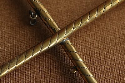 ![]() 真鍮製横木の高さは床から40センチ。 例えばネックレスのディスプレイなどにも最適です。 |