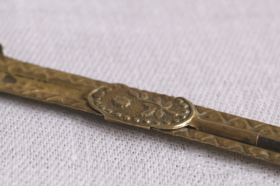 ★A&C16256 ヴィクトリアン スライドタンブールフック L8.8~12.7cm / ¥9,000.-〔税込み・送料別〕 送料:Aランク 【送料ページはこちら】 定形外郵便対応【ご注文時にお申し付けください】 ◆ご注文方法はこちら◆ タンブール刺繍用の真鍮製のかぎ針は、花の意匠が可愛らしい。スライダーで長さを調節できるのも気が利いているし、ちょっと珍しい造りは手芸道具コレクションにおすすめです。やはりこの手の小物は小作りで可愛らしいのが魅力です。スライダーの留め金が片方欠損していますが、問題なく動かせ目立ちません。19世紀のイギリスから。 様々な素材の手芸道具をご紹介しています。ページ下部のリンクからご覧ください。 |