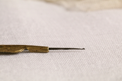 ![]() かぎ針はスチール製。 |