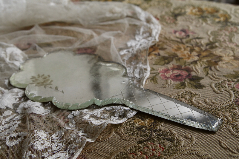 ★A&C16271 花のハンドミラートレイ W27.5×D12.3,H0.5cm / ¥13,600.-〔税込み・送料別〕 送料:Aランク 【送料ページはこちら】 ◆ご注文方法はこちら◆ ハンドカットの縁取りや花模様の洗練と、経年の風合いが程よく塩梅。ミラー全体に現れる仄白い腐食に、アンティークミラーならではの空気感を感じる、ハンドミラー型のトレイ。お気に入りが一層輝くステージとして、ディスプレイに取り入れたいひと品です。20世紀前期のフランスから。 鏡面全体に腐食と、キズが幾らか見られますが、目立つ欠けなどは見られずしっかりした状態です。 ミラートレイは鏡面のウエディングケーキスタンドをご紹介しています。ページ下部のリンクからご覧ください。 |