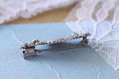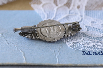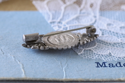 ★A&C16288 マリア様のシルバーマーカサイトブローチ LOURDES 33×16mm(3.6g) / ¥18,500.-〔税込み・送料別〕 マーカサイト / 800シルバー 送料:Aランク 【送料ページはこちら】 定形外郵便対応【ご注文時にお申し付けください】 ◆ご注文方法はこちら◆ シルバーの優しい光沢を背景に、マーカサイトの硬質な輝きが際立つ小さなブローチ。円くセットされて光輪のようにマリア様のレリーフを照らし、典雅な横顔が浮かび上がる様子は、聖地を訪れた記念として持ち帰るに相応しい清らかさ。裏面にはルルドの泉に顕現された、奇跡の光景が描かれています。800シルバーのポアンソンが刻まれた、20世紀前期のフランス製。 表面の小キズ以外に目立つダメージの見られない、きれいなしっかりした状態です。 マリア様のレリーフの、ブローチやペンダントをご紹介しています。ページ下部のリンクからご覧ください。 |