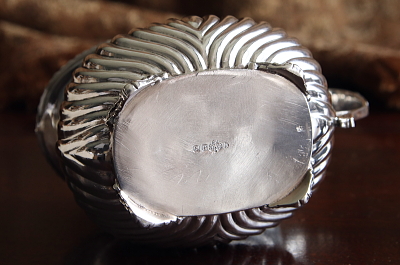 ★A&C16290 シェルパターン ティー3点セット ティーポット:W28.5,D12,H15cm(1000ml) クリーマー:W14,D9,H9.8cm シュガーベイスン:W19.5,D9.7,H10.7cm / ¥39,800.-〔税込み〕 送料:宅配便送料無料(3万円以上) ◆ご注文方法はこちら◆ 端正なフォルムのシルバープレートのティー3点セット。縁飾りや脚には小さくシェルパターンを飾り、ポットのハンドルや摘みの黒が全体を引き締めて、銀の輝きを際立たせる、古典的なイギリスのスタイルが魅力のティーセット。茶葉がよく動きそうなふっくらした胴、水切れの良いスパウト、ゆったりしたサイズのクリーマーやシュガーベイスンなど、英国の紅茶道具らしい使い勝手の良さそうな、古き良き時代を思い起こさせる、良い顔立ちが自慢です。20世紀前期のイギリス製。 ポットの容量は満水で1000mほど、水切れ良いです。ポットの内部はクリーニング済みのきれいな状態。クリーマー、シュガーベイスンに施された、内側の金メッキも残っておりきれいです。目立つ凹みやキズが見られず、全体にとてもきれいなしっかりした状態と言えます。 他にもシルバープレートのティーポット、セットをご紹介しています。ページ下部のリンクからご覧ください。 |