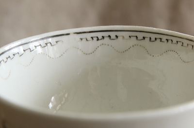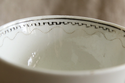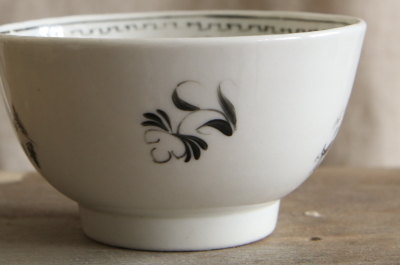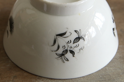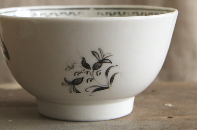 ★A&C16298 アーリーヴィクトリアン ハンドペイント ティーボウル&ソーサー ボウル:W9,H4.8cm ソーサー:W13.5,H3cm / ¥23,000.-〔税込み・送料別〕HOLD 送料:Aランク 【送料ページはこちら】 ◆ご注文方法はこちら◆ なめらかな且つ古色を感じる白い陶肌に、ブラックアンドホワイトの草花文様を手描きで描いたティーボウル&ソーサー。筆先でさらりと描いたような迷いのない筆致が、伊万里や李朝陶磁器にも通じる、見るほど触るほどに味わいが深まる、アンティークの魅力に満ちたひと品です。アーリーヴィクトリアンならではの古いスタイルの紅茶器の、深みのあるソーサーにうずくまるような、姿良い造形のボウルでお気に入りの紅茶を愉しみたい。19世紀中期のイギリス製。 容量はすり切りで160cc程です。絵柄に僅かなスレ、ボウルの糸底に小さな欠けが見られる程度で、特に目立つダメージは見られません。陶器の質もよく、時代を考えれば、とてもきれいな状態で残っています。 グリサイユのティーボウル&ソーサーをご紹介しています。ページ下部のリンクからご覧ください。 |