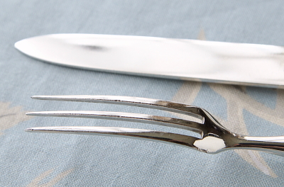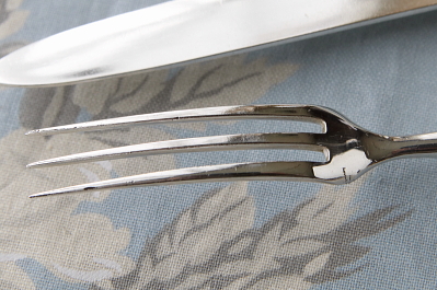 ![]() フォークにシルバープレートの捲れがわずかに見られます。 |