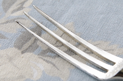 ![]() フォークにシルバープレートの捲れがごくわずかに見られます。 |