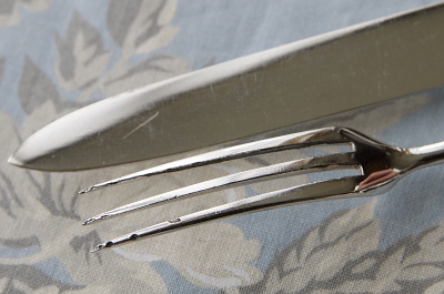 ![]() フォークにシルバープレートの捲れが見られます。 |