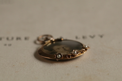 ★A&C16377 エドワーディアン ゴールドロケット W23.4,D4.2,H33.4mm(2.7g)(マルカン含む) / ¥57,000.-〔税込み〕 グラスパール / ガラス / K9ゴールド 送料:宅配便送料無料(3万円以上) ◆ご注文方法はこちら◆ ソリッドゴールドのフォトフレームやマルカンに、グラスパールの小粒が映えるロケット。子供たちの写真を表裏に飾る、可愛らしくも贅沢なゴールドのペンダントは、ホールマークから、1905年のバーミンガム製と分かるエドワーディアンアンティーク。ガラスカバーの円みも愛らしく感じるひと品です。 裏面のガラスにキズが見られますが、他には特に目立つダメージのないしっかりした状態です。チェーンは付属せず、ペンダントトップのみの販売です。 色々なスタイルのロケットペンダントをご紹介しています。ページ下部のリンクからご覧ください。 |