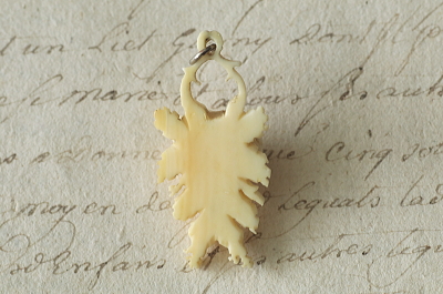 | ★JW534 モスローズのアイボリーペンダントとボーンブローチ その起源は18世紀まで遡るオールドローズ。つぼみや茎が腺毛に覆われている様子から、モスローズと呼ばれます。19世紀にとくに流行したそうで、当時の食器の絵柄などにも見掛けることがあります。象牙、あるいはボーン彫刻なら、この苔のような表現は出来れば避けたいのでは、とも思いますが、職人さんの腕の見せどころだったのでしょうか。決して多くはないですが、時々見つけると嬉しくなるモチーフです。 今回ご紹介のペンダントは象牙製。小さなペンダントトップですが、繊細な表現がされていて、交差する茎から下る花と蕾の構図も、初めて見る珍しいものです。ブローチは、ボーン製ですが、きめ細かく、象牙と見分けにくい良質な材料が使われています。主に垂直方向に切り抜いていく、やや単調な彫刻方法ですが、それでもこの細かいモスの表現はたいへんだったことでしょう。なかなか美しい仕上がりです。こちらも、この構図を見るのは初めて。 ローズといっても、オールドローズ。モスと付けばなおさら特別感のある、可愛らしい二つの彫刻作品。薔薇の咲き乱れる6月のイギリスで見つけてきました。いずれも1900年前後のヨーロッパ製。 |