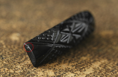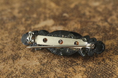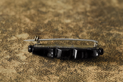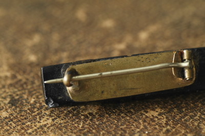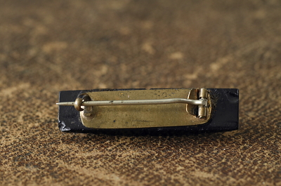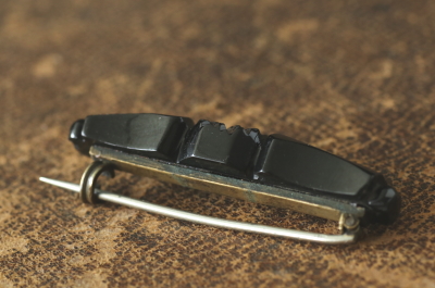 ★JW536-C ヴィクトリアンジェット バーブローチ W39×H10mm(4.2g) / ¥18,000.-〔税込み・送料別〕 天然ジェット 送料:Aランク 【送料ページはこちら】 定形外郵便対応【ご注文時にお申し付けください】 ◆ご注文方法はこちら◆ 直線的な彫刻で輝きがはなやかな、シンプルな長方形のバーブローチ。7ミリとしっかりとした厚みにも、希少な素材の存在感を感じます。真ん中の彫刻にごく薄い欠けがありますが、よく見ないとわからない程度で目立ちません。裏の角にごく小さな欠けがありますが、使用上気にならないと思います。落下防止にシリコンストッパーをお付けします。アンティークケースは付属しません。 |