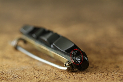![]() 厚みは7.3ミリ。(金具含まず) |